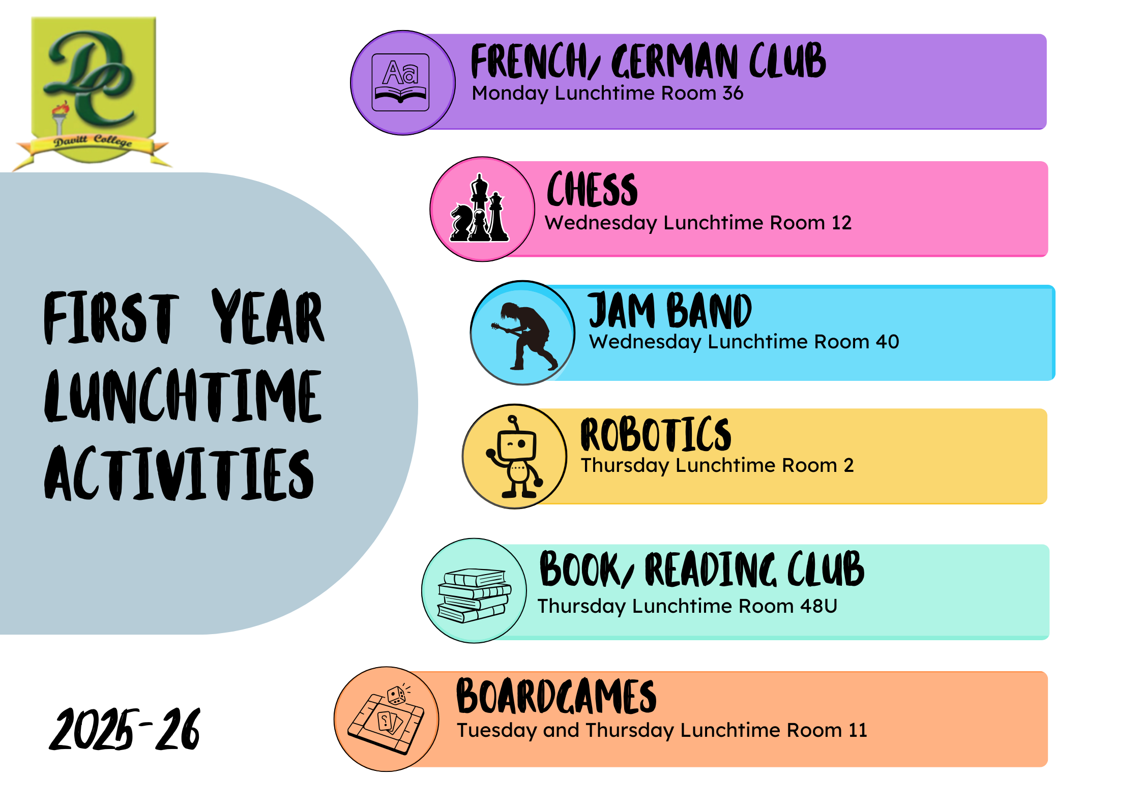 First Year Lunchtime Activities 2025-26